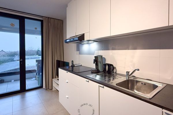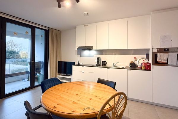 Inrichting: inkomhal, de leefruimte en maatkeuken (met vaatwasser) lopen over in één geheel, berging, zonnige terras, één slaapkamer, badkamer voorzien van een inloopdouche, toilet en lavabo.