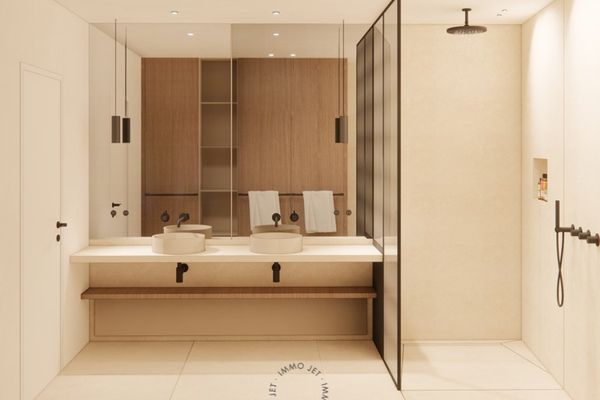 - Een badkamer met hoogwaardige afwerking: inloopdouche en dubbel lavabomeubel